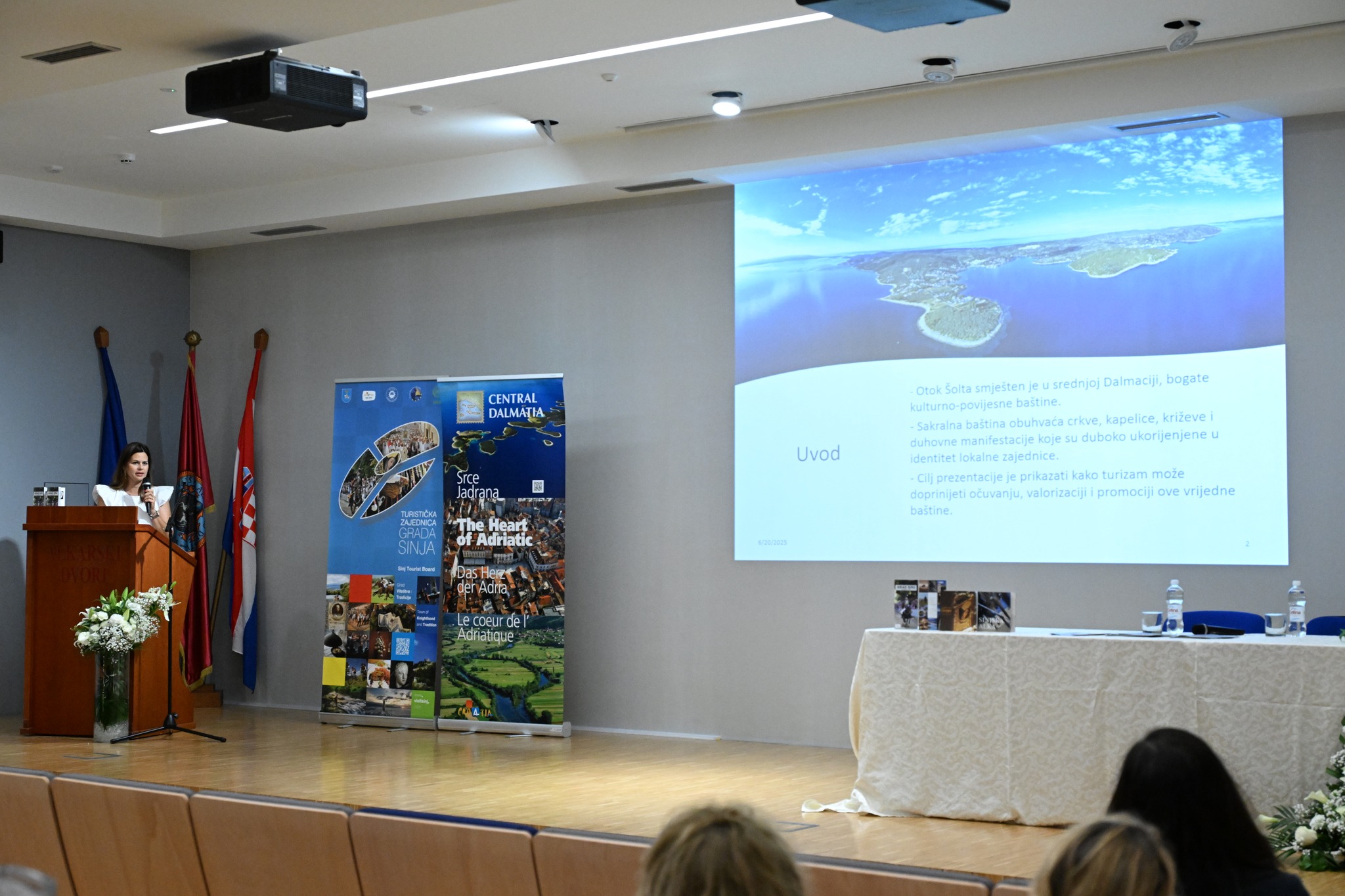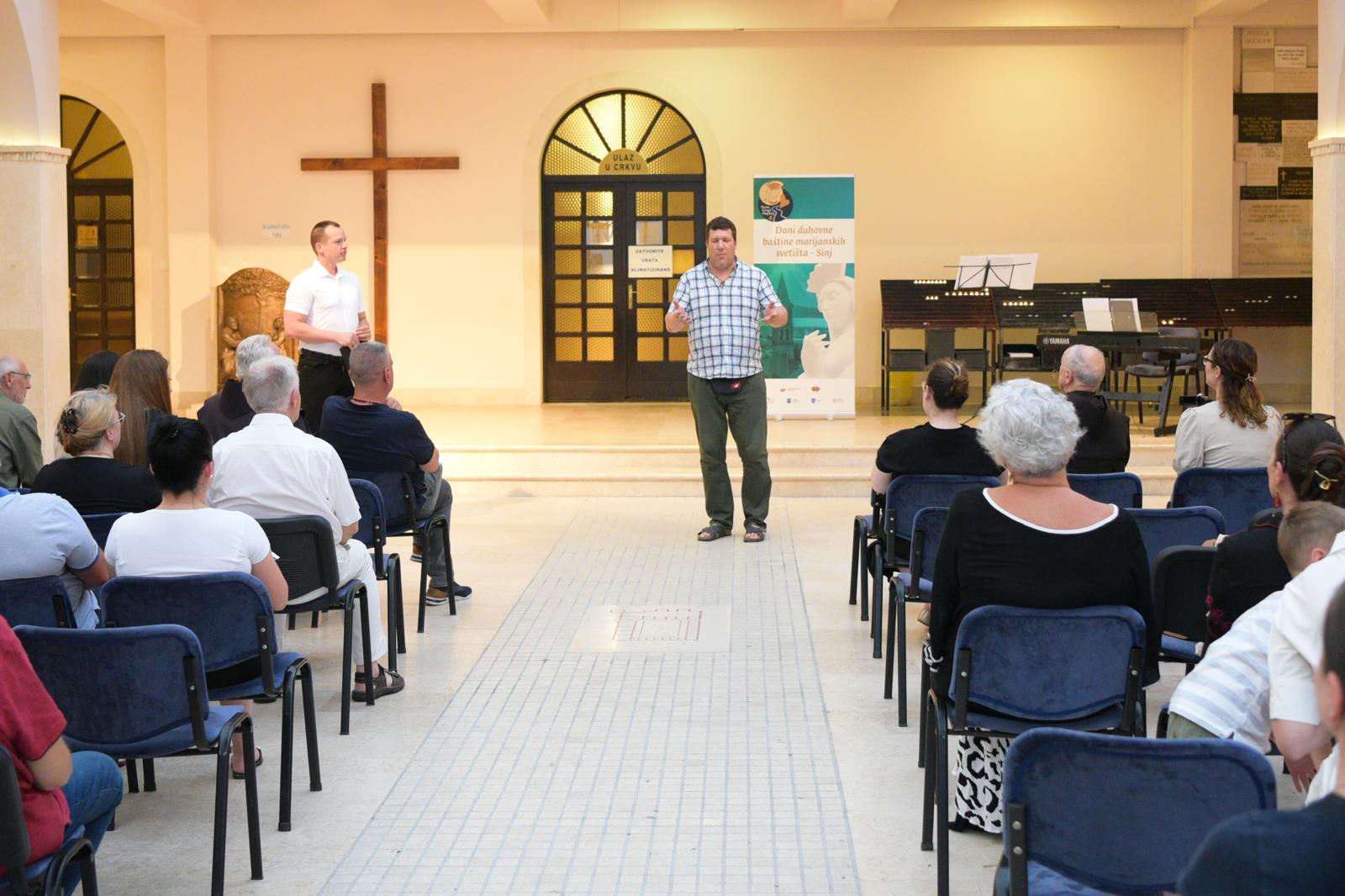 U prvom dijelu programa, koji je moderirao dr.sc. fra Domagoj Runje, uslijedila su predstavljanja marijanskih svetišta. Gvardijan pater Bogdan Knavs predstavio je slovensko svetište Majke Božje Svetogorske kraljice, gvardijan fra Ilija Božić Svetište Majke Božje Olovske iz Olova u Bosni i Hercegovini, a gvardijan vlč. Ivan Marković Svetište Majke Božje Karmelske iz Svete Gore – Gerovo. Kako se nalazimo u godini iznimno značajnih obljetnica na nacionalnoj i lokalnoj razini, jer obilježavamo 1100. obljetnicu Hrvatskog Kraljevstva, te 310. obljetnicu utemeljenja viteške igre Alke nakon čudesne pobjede pod Sinjem nad Osmanlijama 1715. uz Gospin zagovor, uslijedilo je izlaganje dr. sc. don Josipa Dukića o prvom hrvatskom kralju Tomislavu i Splitskim crkvenim saborima. Predavanja su potom održali: Željana Zovko, zastupnica u Europarlamentu, s temom Međukulturni i međureligijski dijalog i uloga Europske unije u promicanju vjerskih sloboda, Ivana Svedružić Šeparović, konzervatorica, s temom Važnost restauratorskog rada na svetištima diljem Hrvatske, s naglaskom na Sinj i Svetište Čudotvorne Gospe Sinjske, u svrhu valorizacije, očuvanja lokalnog identiteta i autentičnosti destinacije, Josip Joško Radić, kipar, predstavio je svoj rad s temom: Tišina svetih oblika - duhovni izraz kroz minijaturu, dr. sc. Ivan Alduk govorio je o Odnosu franjevaca i papa u 14 . i 15. stoljeću u unutrašnjosti Dalmacije, novinar Vlado Čutura o Duhovnoj, umjetničkoj i arheološkoj vrijednosti marijanskih crkva na hrvatskim otocima, Maja Radman o Sakralnoj baštini otoka Šolte, utjecaju i doprinosu turizma u njenoj valorizaciji i prezentaciji, Valentino Dražić Celić, o Projektu Civitas sacra, uspješnosti provedbe i značaju za sakralnu baštinu grada Šibenika. Moderator drugog dijela programa bio je prof. Branimir Romac. Nakon svih izlaganja uslijedio je okrugli stol s Ljiljanom Reljić, Joškom Stellom, Josipom Radićem, Valentinom Dražićem Celićem, vlč. Ivanom Markovićem, fra Ilijom Božićem i Vladom Čuturom na temu: Marijanska svetišta, kultura i identitet jednog naroda.